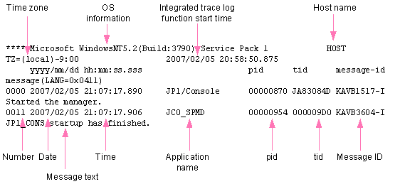 Note: This log is a process-by-process trace log. The process-by-process trace log is the log information that is output by each function of JP1/IM. It is output to a different log file depending on the function that is being used. Since the process-by-process trace log contains product information, its content is not made public.