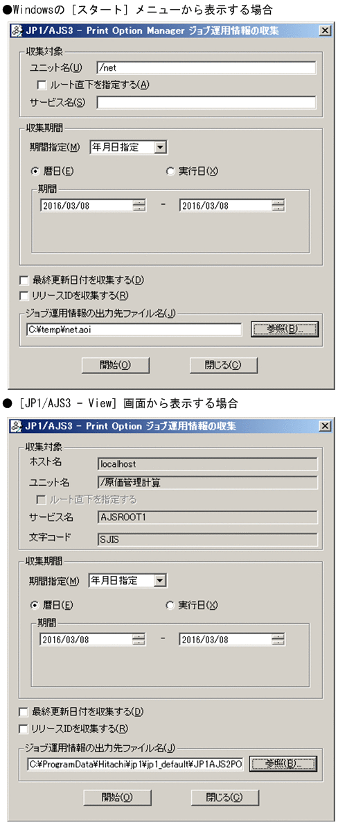 ただし,実行日を指定して収集できるのは,JP1/AJS3 - Print Option Manager 11-10以降の場合だけです。