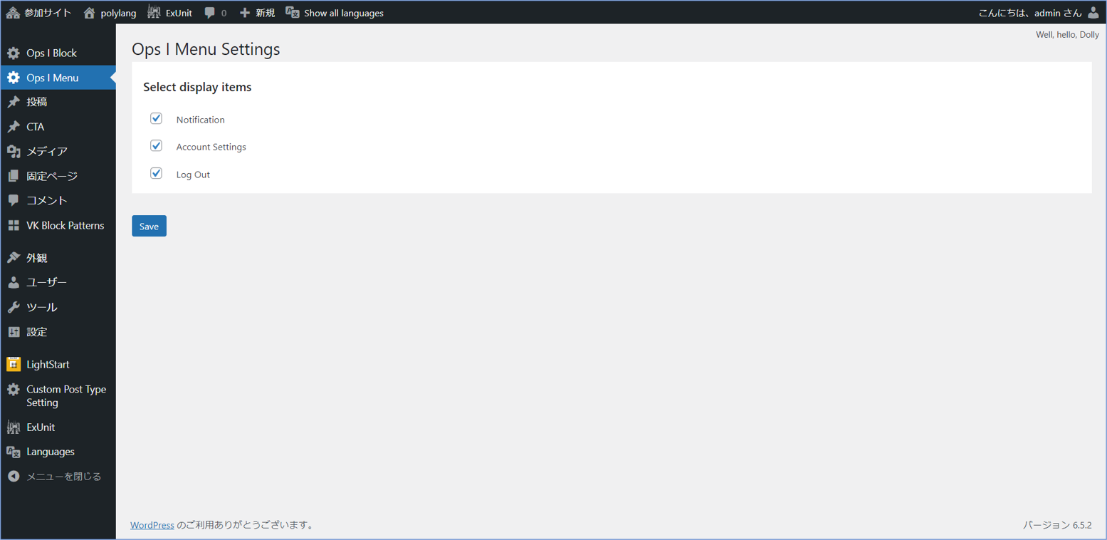 The language for Ops I notifications can be changed from [Account] - [Change language of notification], which is displayed by clicking [Manage Account] in [Ops I Menu]. The language selected here will be reflected as the display language for each Ops I account, but the site language is set individually for each site. For details, see “Multilingual support for sites”.