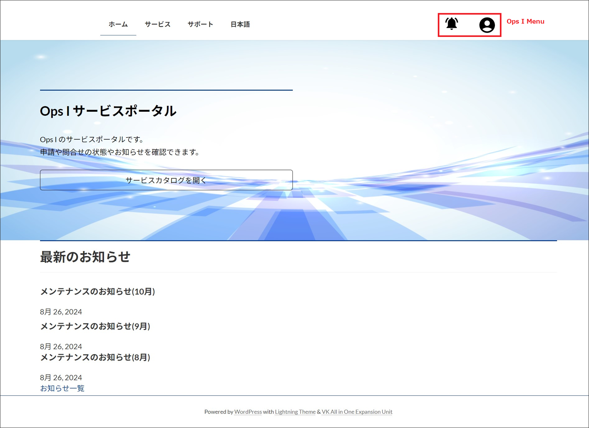 [Ops I Menu] is the menu implemented by default in the [Lightning] theme, and is also implemented in the main site and template site.