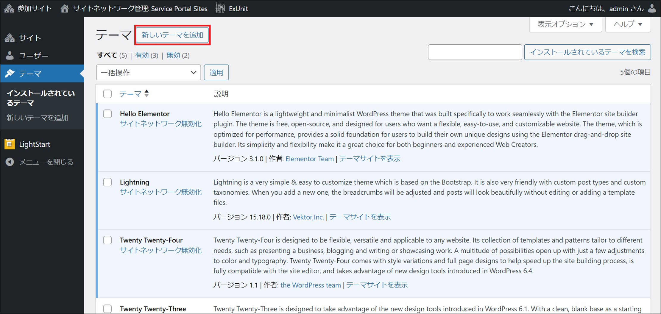 ③ Site network administrators and site administrators can change the theme of the site from [Appearance] - [Themes] on the site.