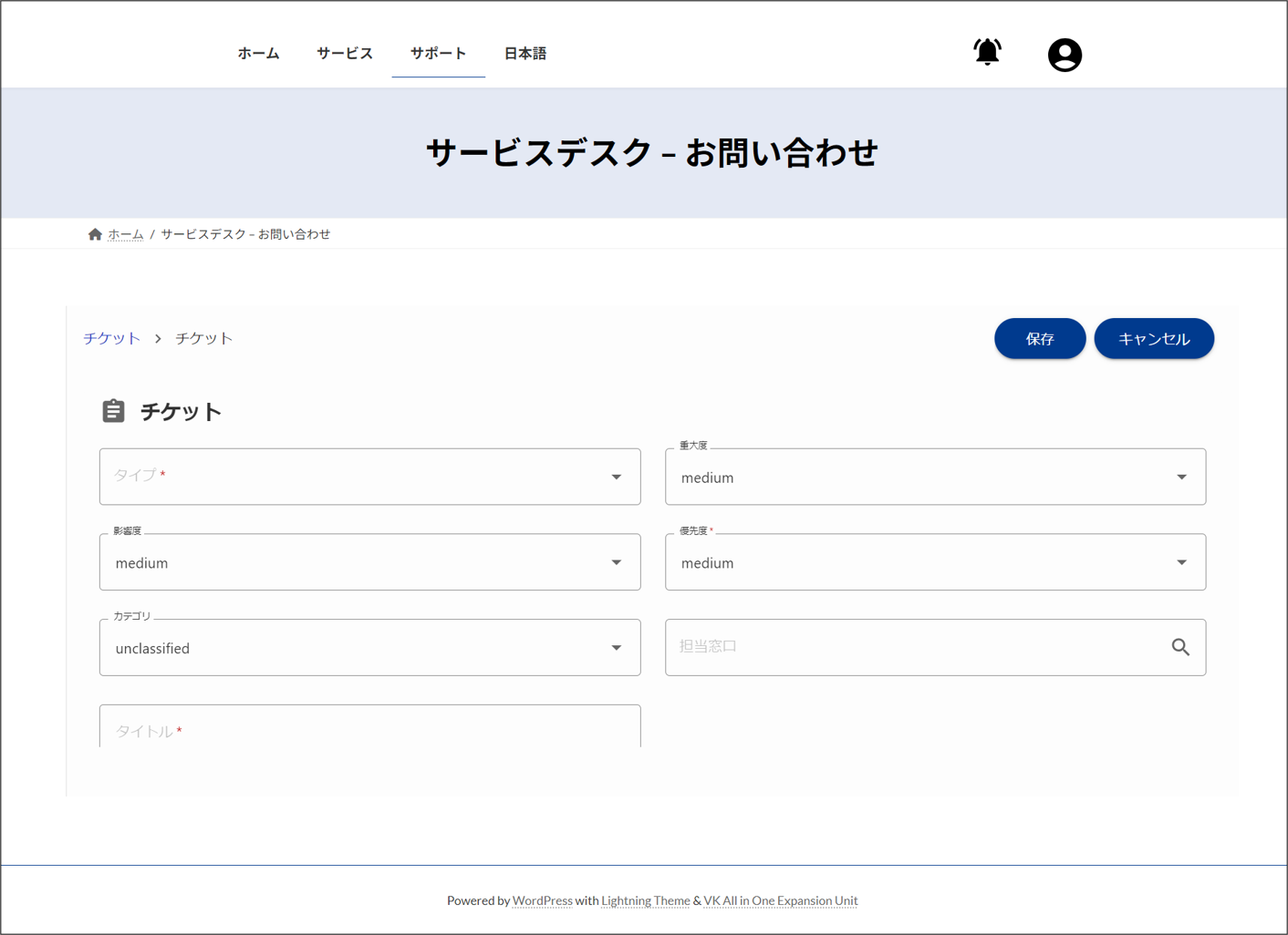 Ops Iのチケットの作成画面(リクエストアプリケーション)が表示されます。