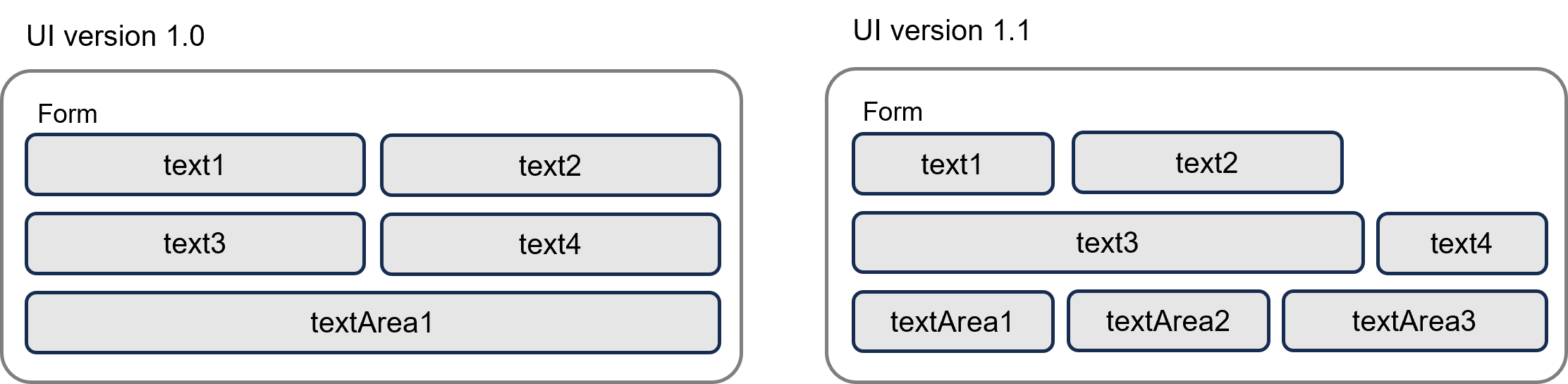 In UI version 1.0, data sources are specified for each Form and Table, but in UI version 1.1, data sources are specified for each UI. This improves communication performance.