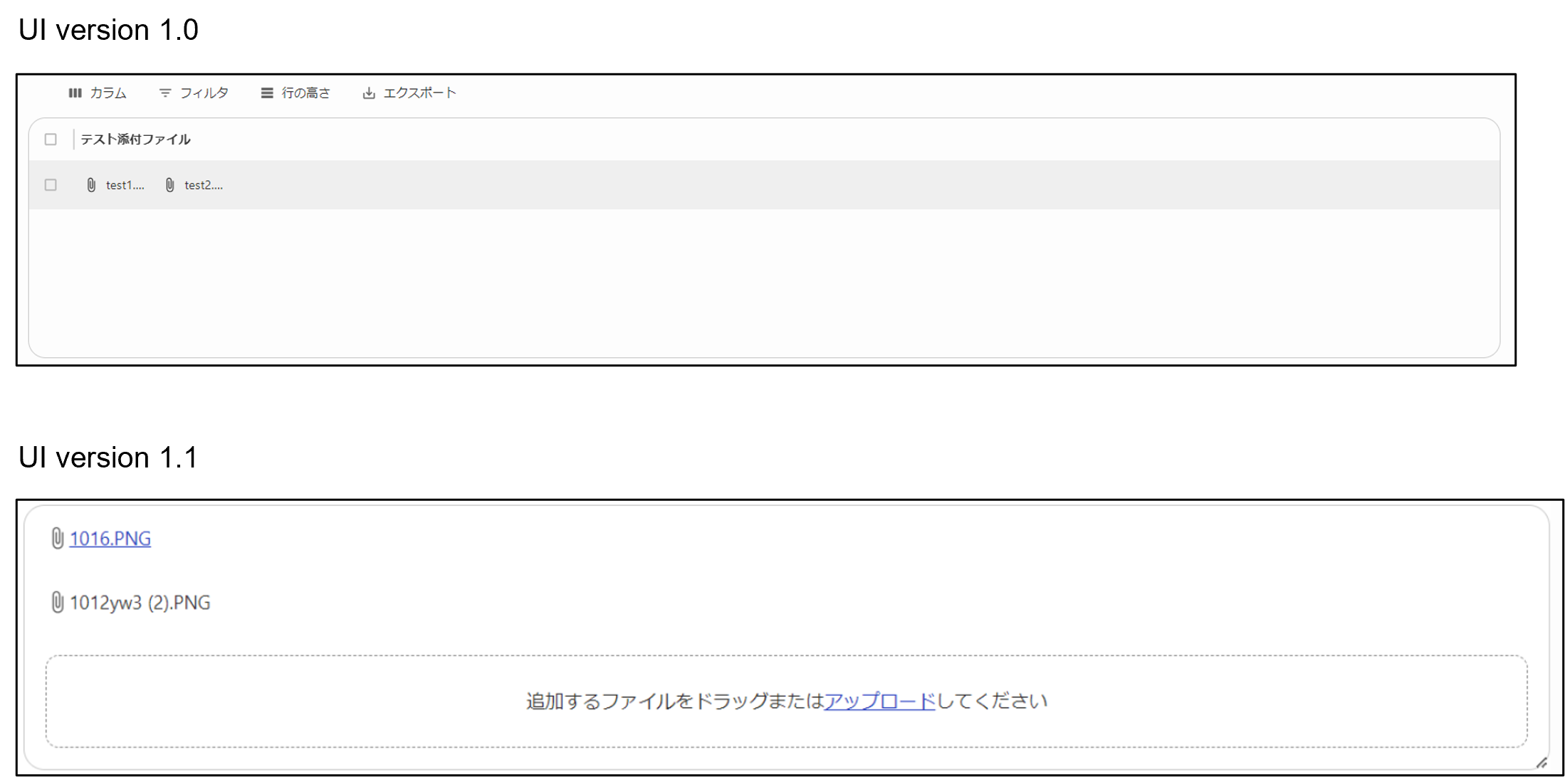 In UI version 1.0, the Attachment definition is referenced from the UI via Datamodel, but in UI version 1.1, the Attachment definition is referenced directly from the UI.