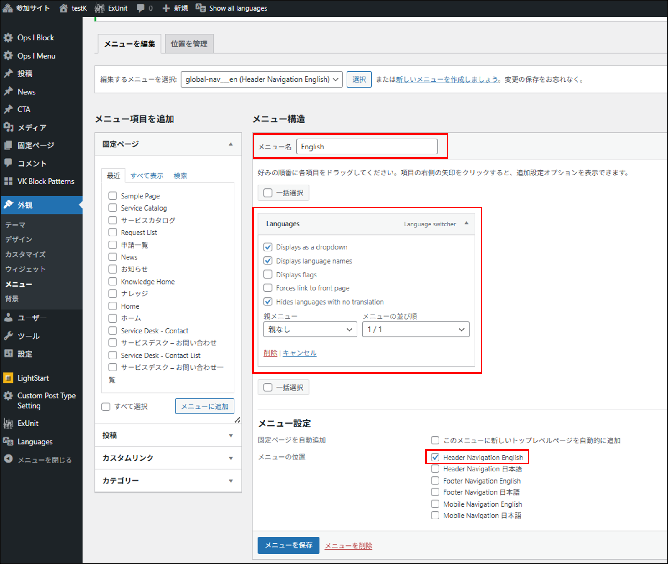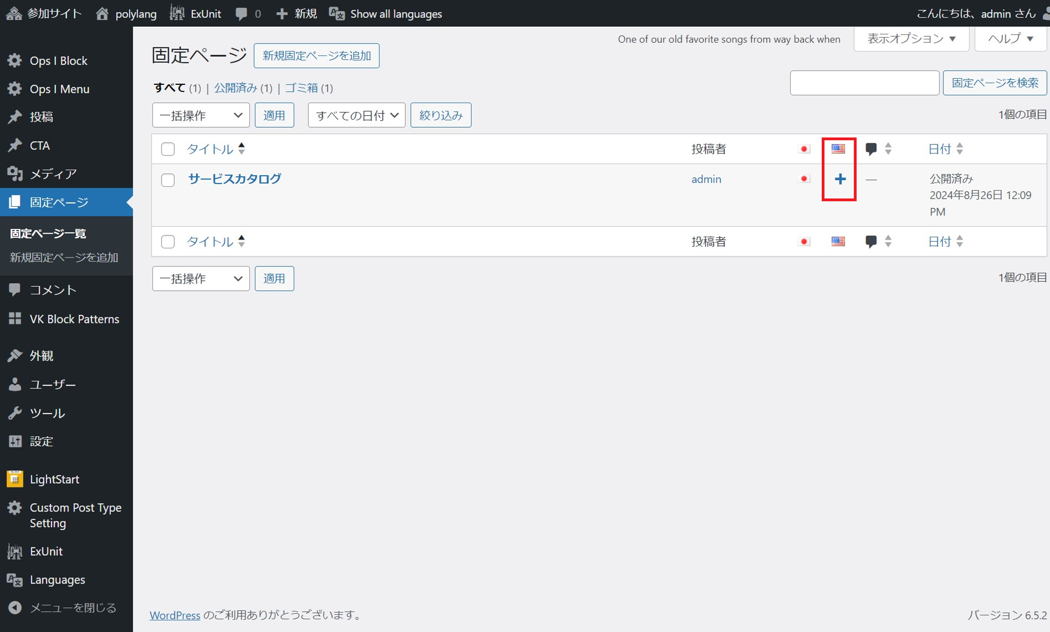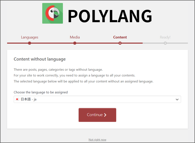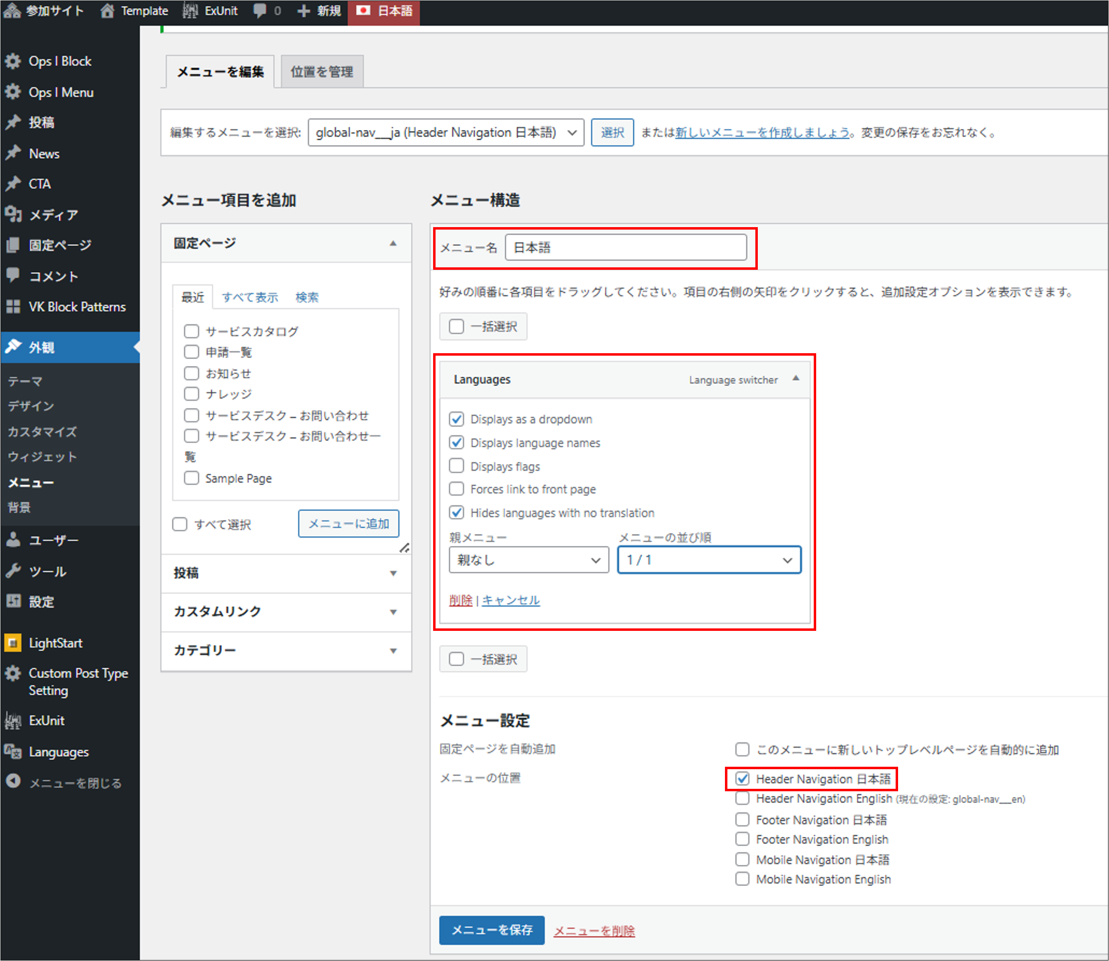 To add languages to existing sites, go to the [Languages]-[Setup] menu and add languages. At this time, you can set the language for existing pages and posts by selecting the language you wish to assign in the setting called [Content].