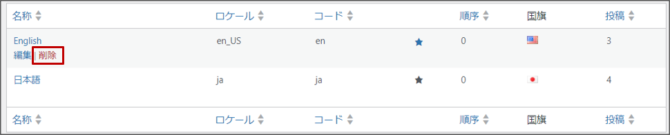 Languages can be deleted from [Languages]-[Languages]. However, deleting languages does not delete the pages or posts, which must be removed separately.
