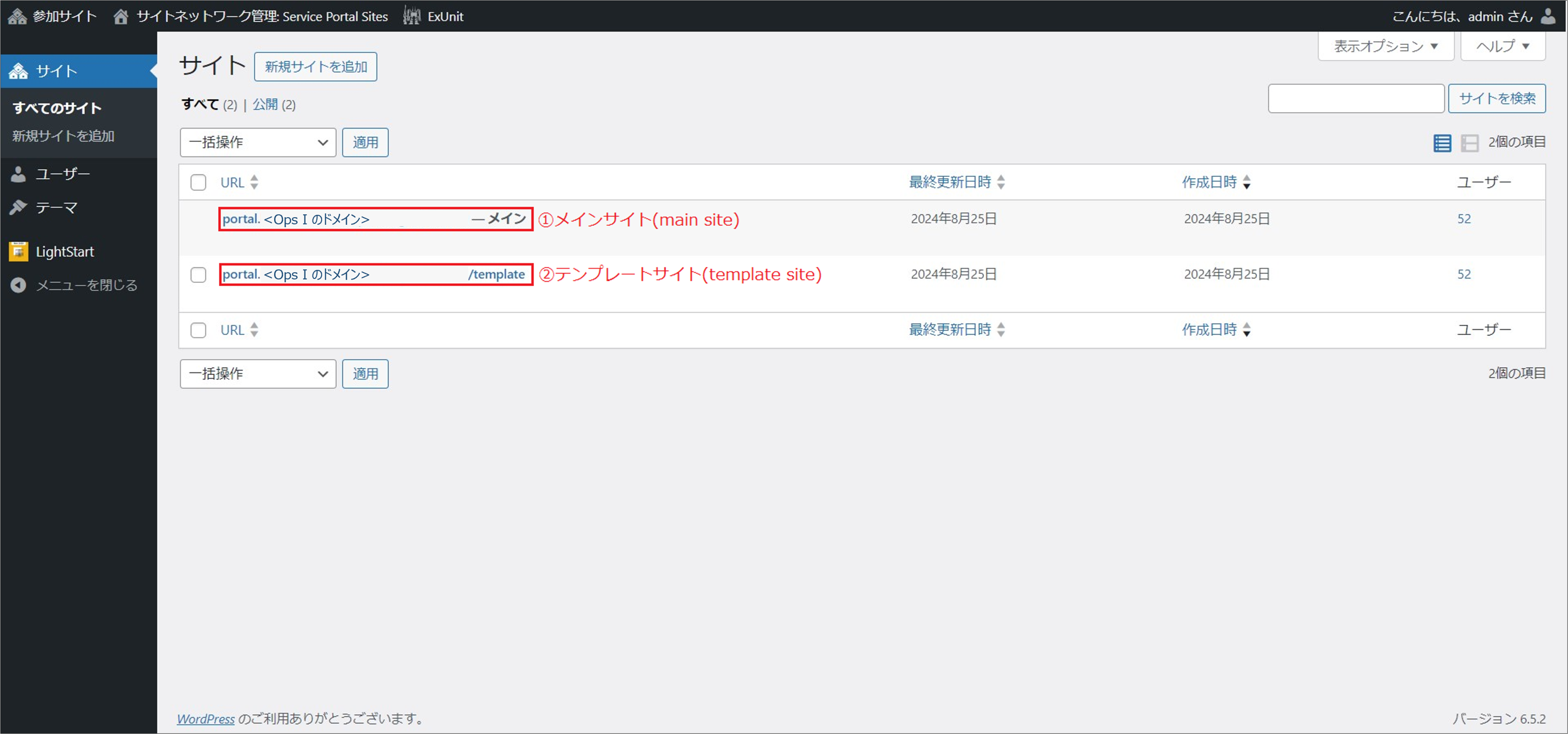 Two types of sites are provided in the initial state of site management: Main site and template site. Use the two sites for different purposes. The details are as follows.