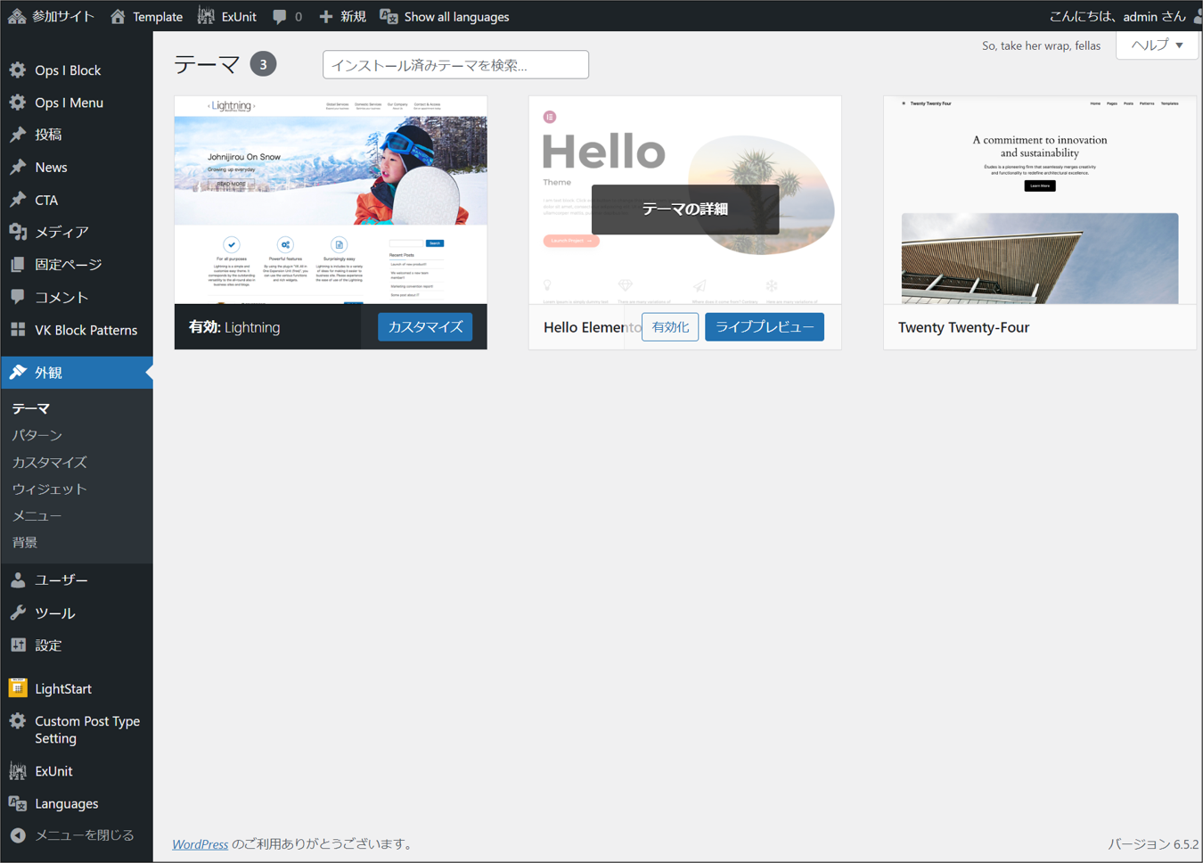 ③ Site network administrators and site administrators can change the theme of the site from [Appearance] - [Themes] on the site.